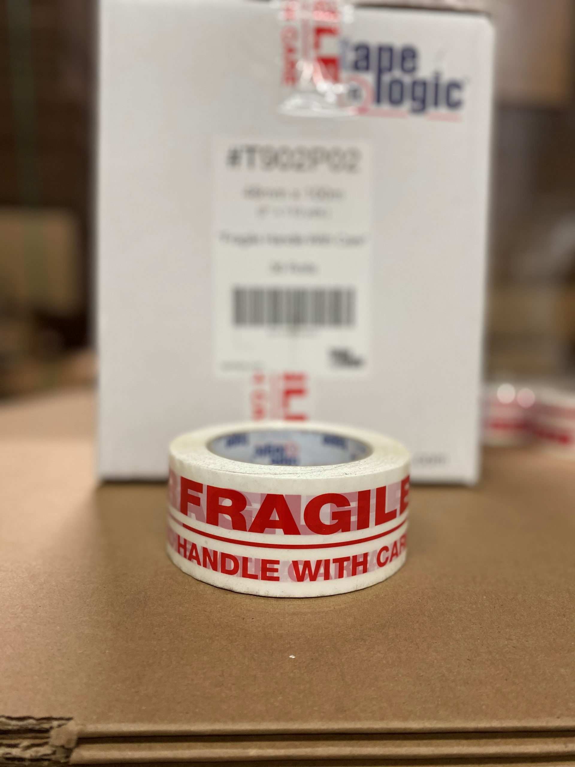 36 ROLLS OF 2″ PRINTED “FRAGILE” AND “FRAGILE HANDLE WITH CARE” TAPE